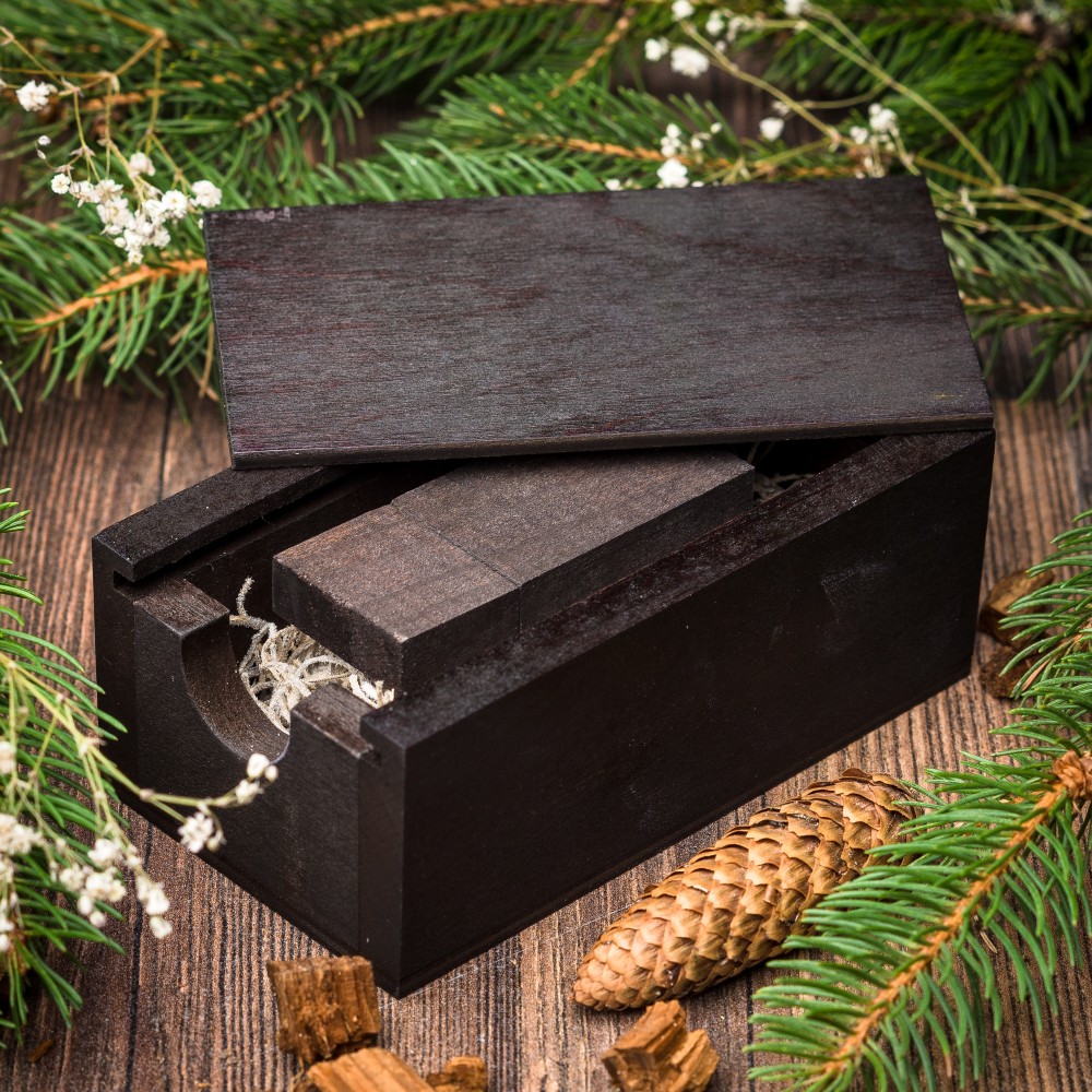 Nyitható fedelű USB pendrive tartó fadoboz 125x70 mm-es, dió
